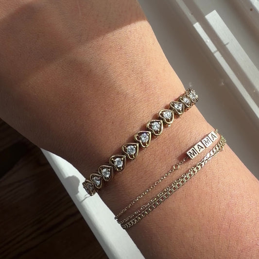 Gold Vermeil Heart Link CZ Tennis Bracelet