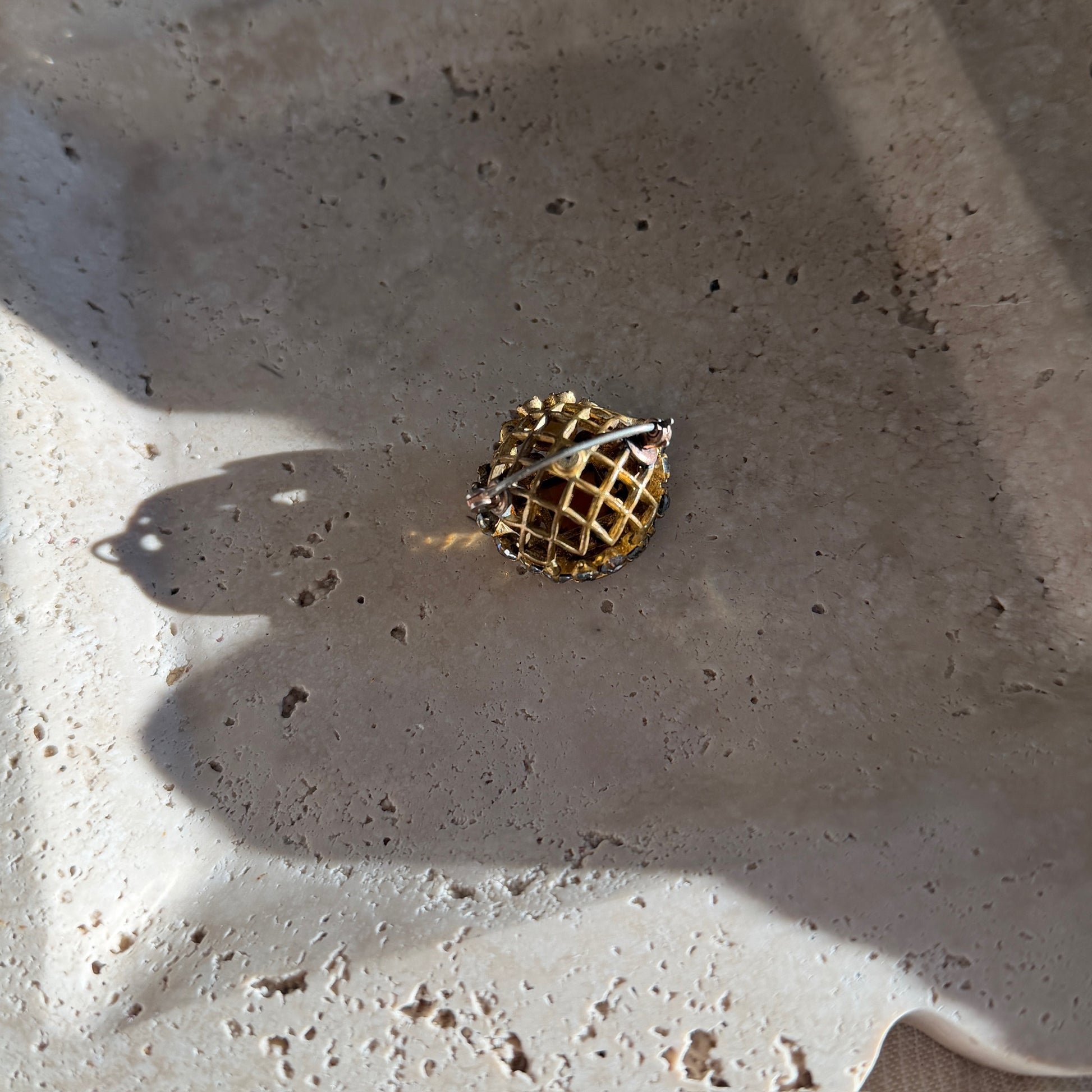 Encrusted dome brooch with rhinestones and CZ stones