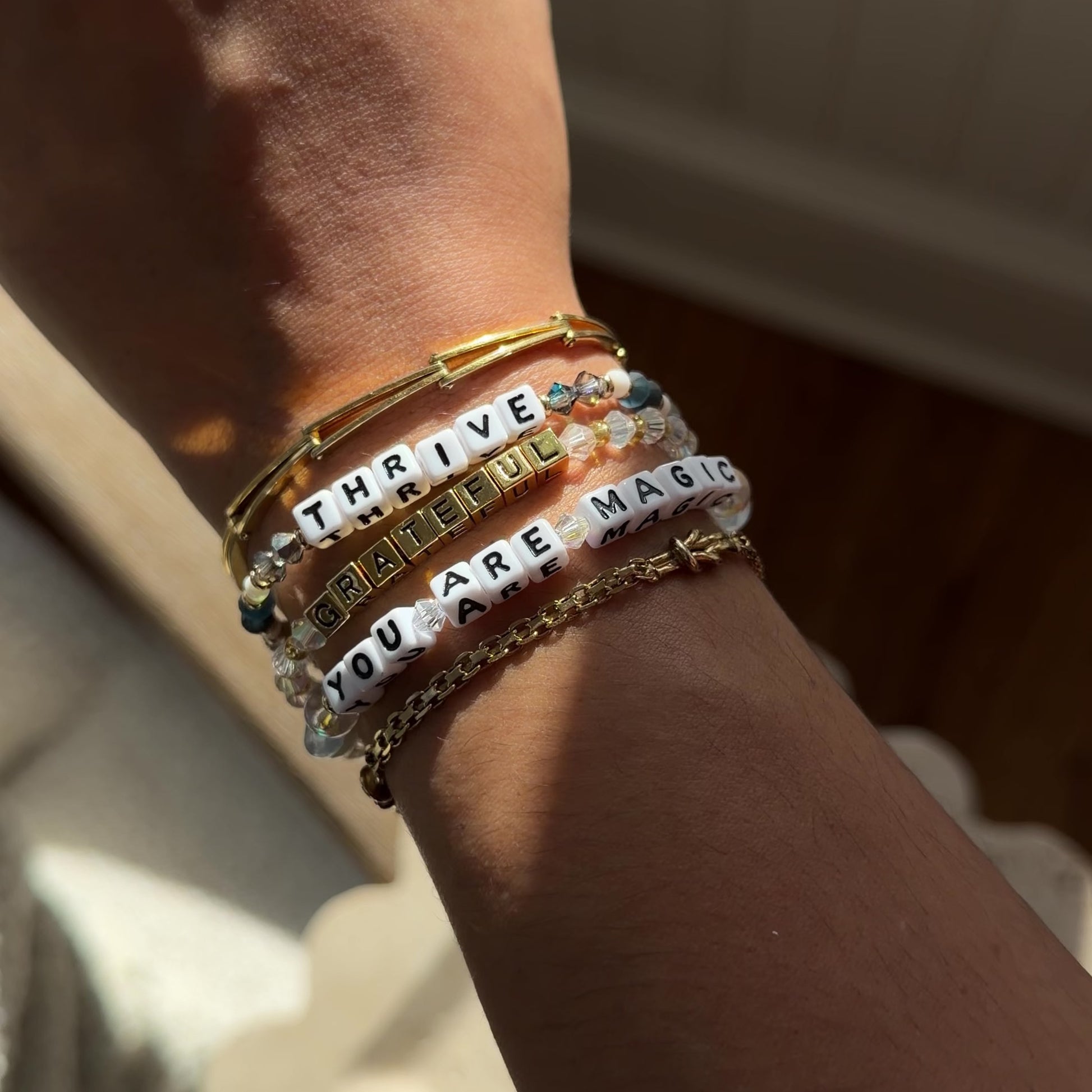Little Words Project: Thrive- SM, Grateful (gold plated brass beads) - SM, You Are Magic - SM
