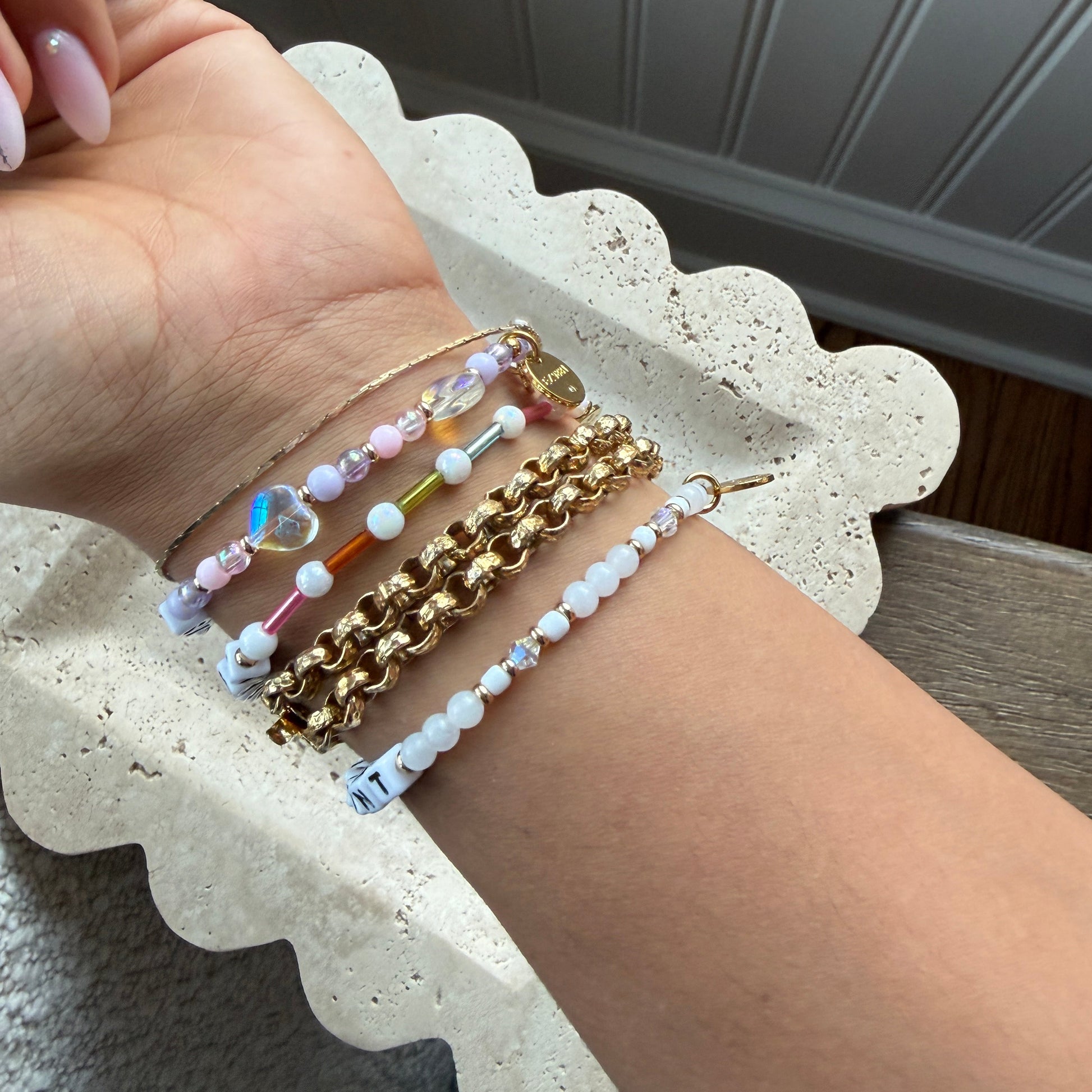 Heart Pieces: Double Chain Rolo Bracelet- 7", Gold Tone Dainty Bracelet -7"
