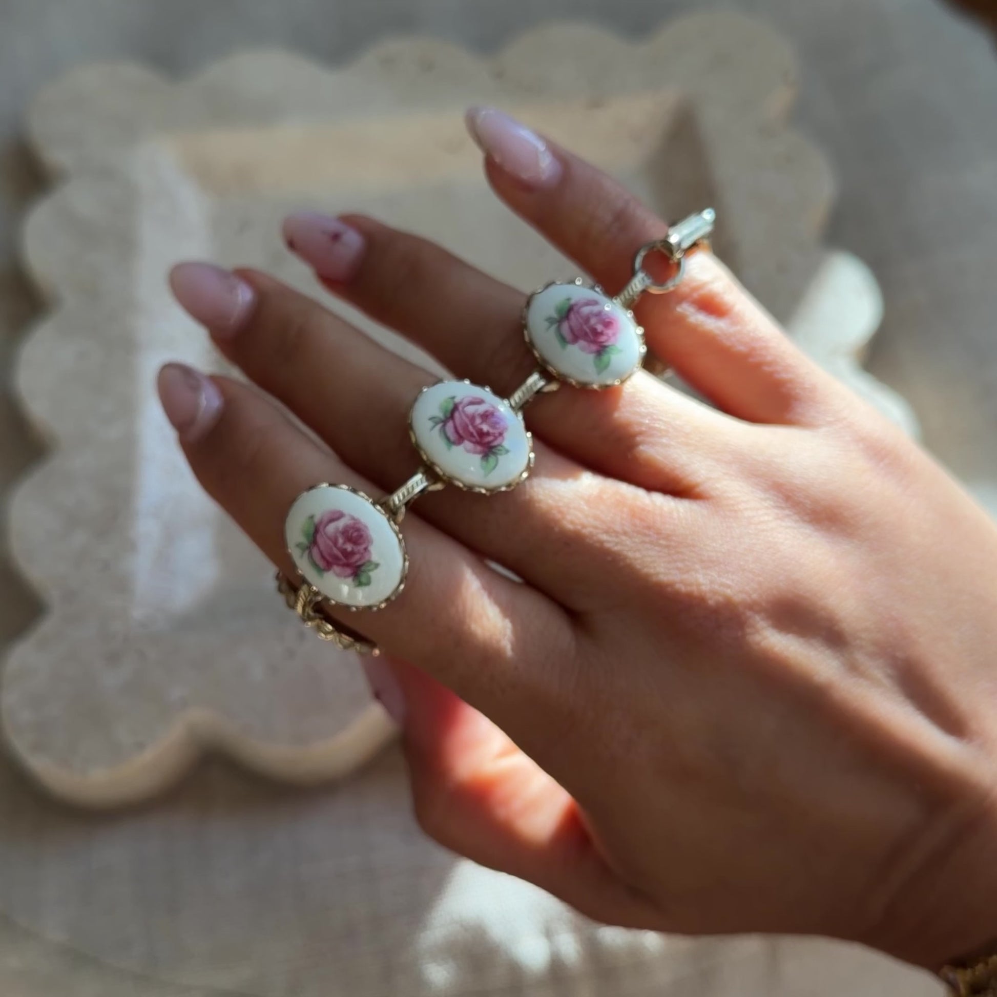 Whiting & Davis Domed Floral Porcelain Bracelet